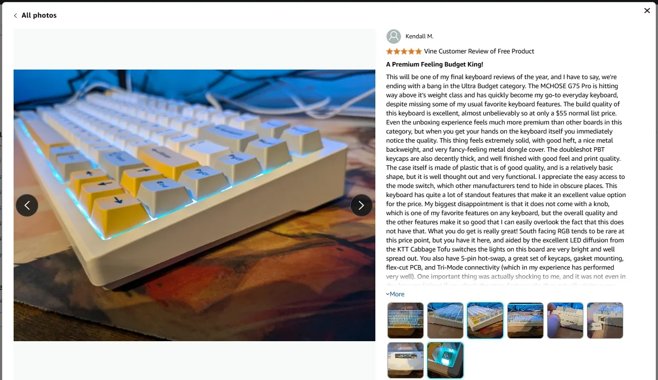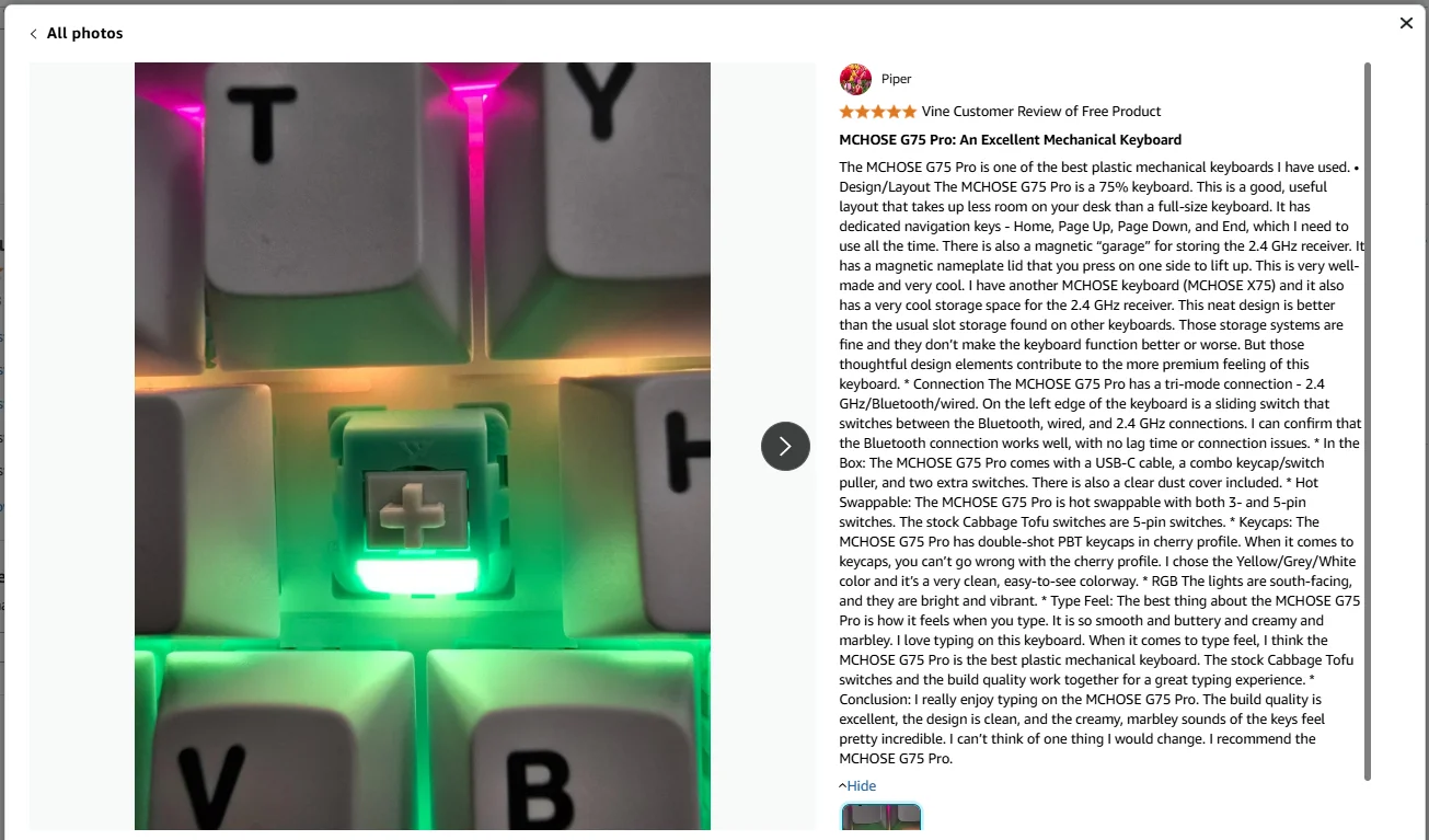 The MCHOSE G75 Pro is a fully customizable mechanical keyboard built for peak performance. It utilizes tri-mode connectivity with 2.4 GHz wireless, BT, and wired options, it adapts effortlessly to any setup. Its compact 75% layout, gasket mount design, and sound-absorbing foam, ensure a comfortable typing experience. With durable double-shot PBT keycaps, this keyboard enhances both comfort and productivity, making it a valuable addition to your workspace.Gasket Structure Design